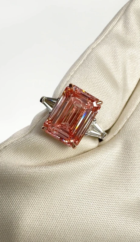 EMERALD DIAMOND 6.14 CT FANCY INTENSE PINK/VVS2 RING (GIA)