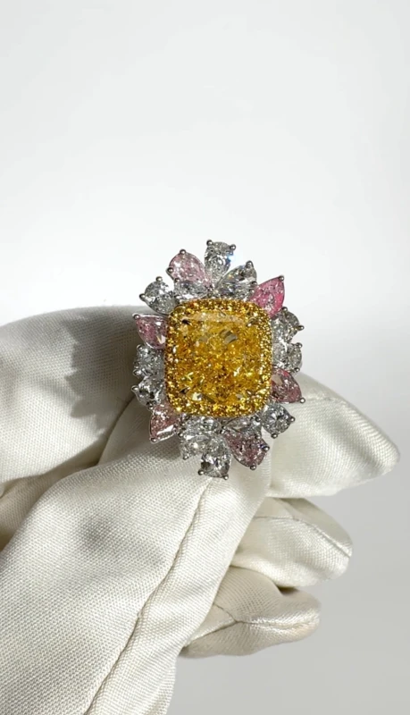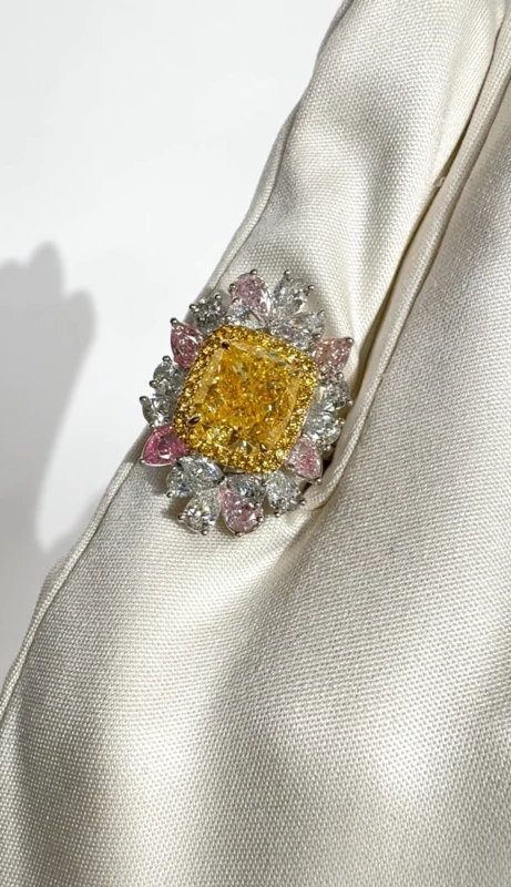 Ring Earrings without a brand CUSHION DIAMOND 5.00 CT FANCY YELLOW/VS2 RING (GIA) 238921 5.00 CT FY/VS2 (id 41875)