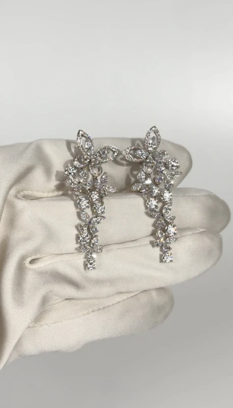 White Gold White Multi Shape Diamond Butterfly Motif Earrings