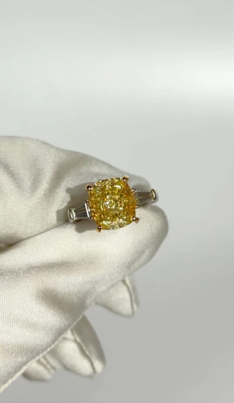 CUSION DIAMOND 5.05 CT FANCY LIGHT YELLOW RING (GIA)